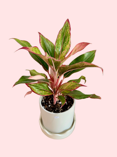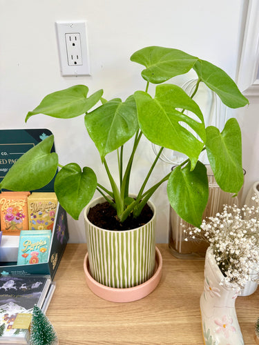 7.75" Split-Leaf Monstera in Striped Ceramic Planter with Saucer